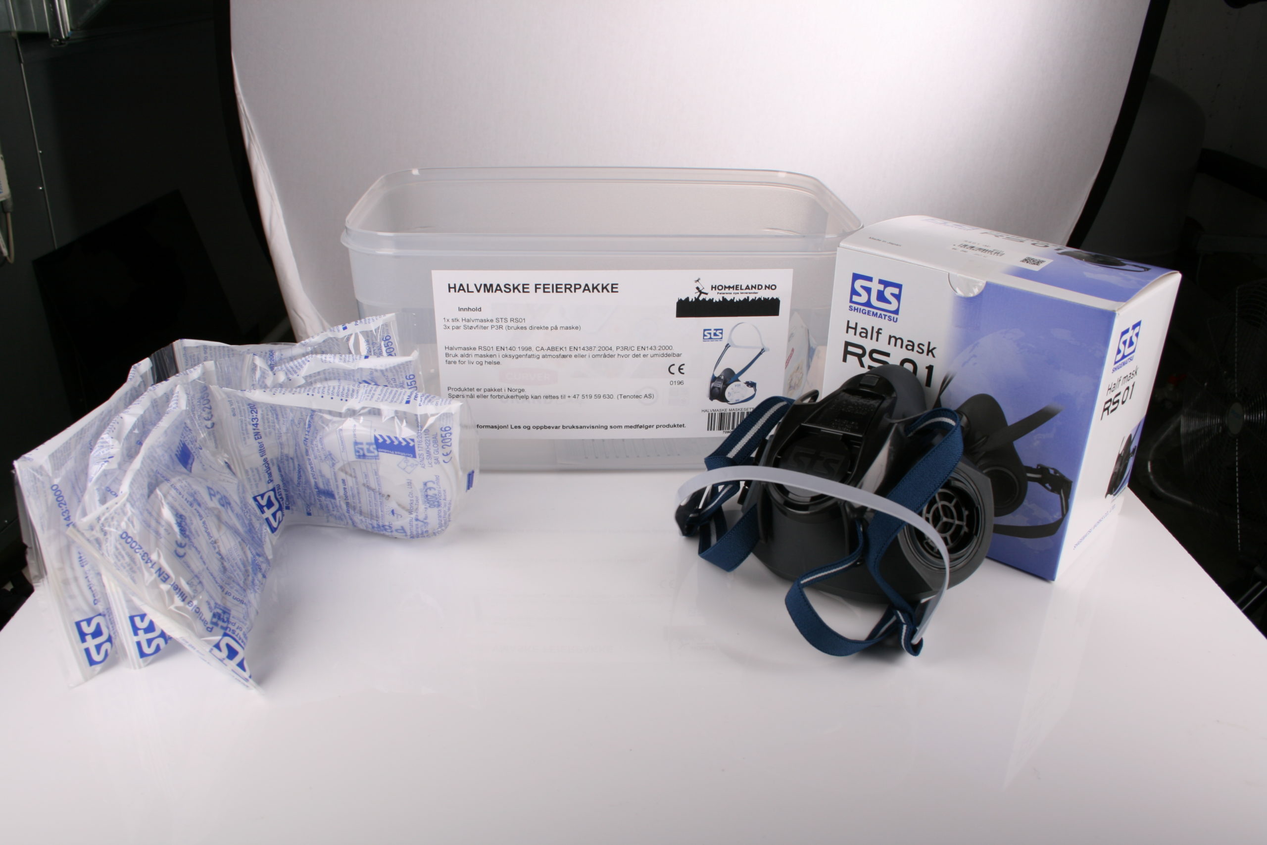 Pakken inneholder 1 stk halvmaske og 3 sett P 3 støvfilter i egen støvtett boks